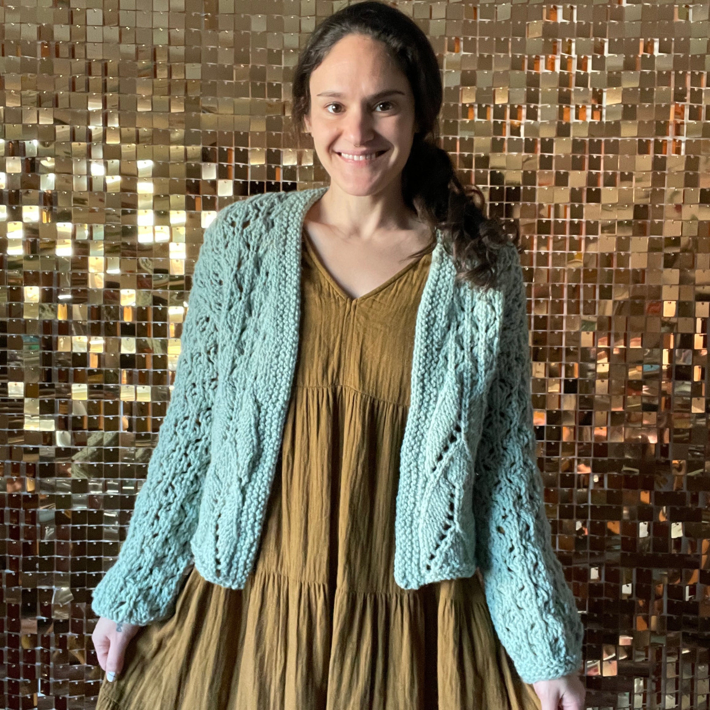 Life can be tough; please don’t give up hope, hang in there and keep dreaming!The Keep Dreaming Cardi was inspired by this sentiment, and my Keep Dreaming Shawl and Cowl patterns. The Body features two different lace motifs and V-neckline shaping. The sleeves feature the same lace pattern as the top of the body and cinch in at the cuff. The boxy, easy fit makes for easy knitting and comfortable layering. Knit up in Flora Adora Fibers naturally dyed chunky weight yarn, this cardigan knits up surprisingly quickly.